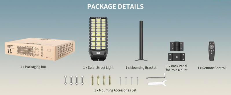 【Easy to Install & Wireless 】Solar powered street lights outdoor comes with all the assembly accessories needed to install on a wall, pole, tree, balcony or anywhere outdoors. The suitable diameter of lighting pole is 1.5 IN~4 IN. No wiring is required and is suitable for parking lots, streets, lawns, parks, courtyard, commercial square and other outside places.