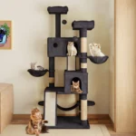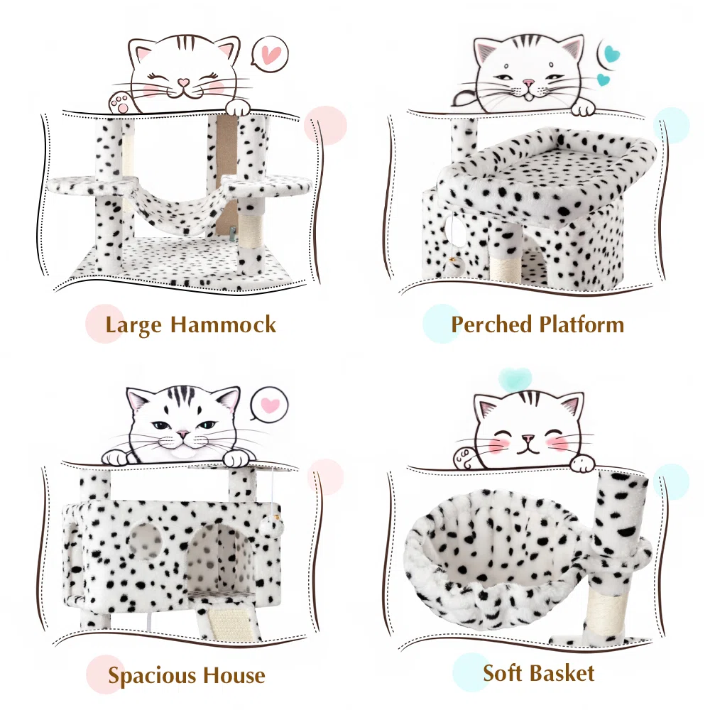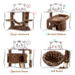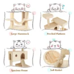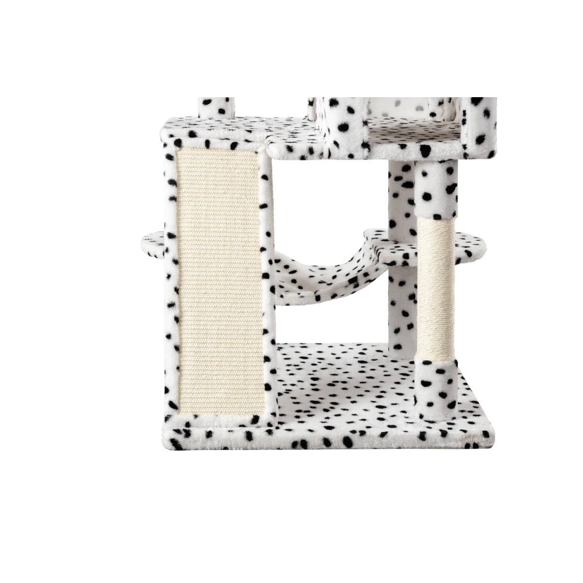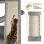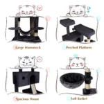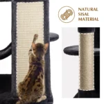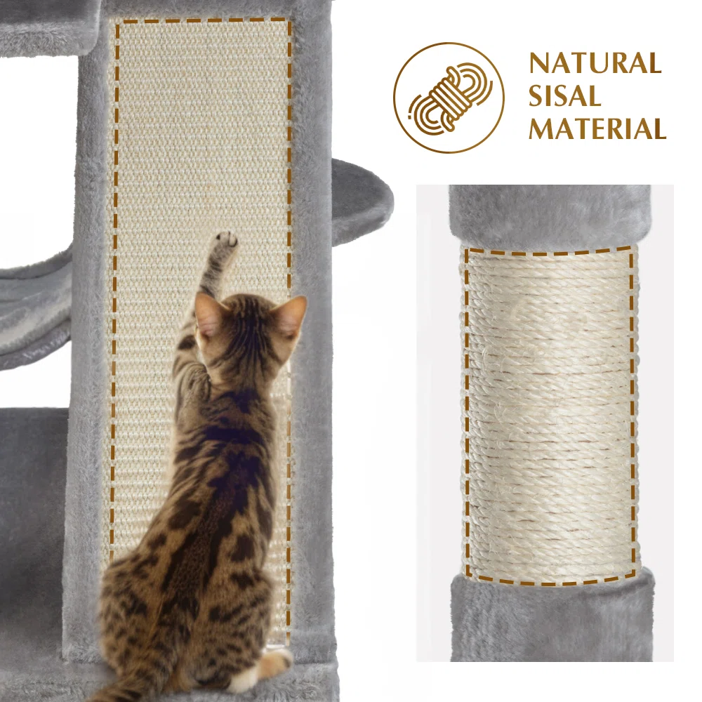 This Cat Tree has a safe design, featuring an anti-tipping belt. This added security ensures that your feline friend can play and explore with confidence, without the worry of the tree tipping over. The wide base and sturdy construction provide additional stability, giving you peace of mind as your cat enjoys their new kingdom.