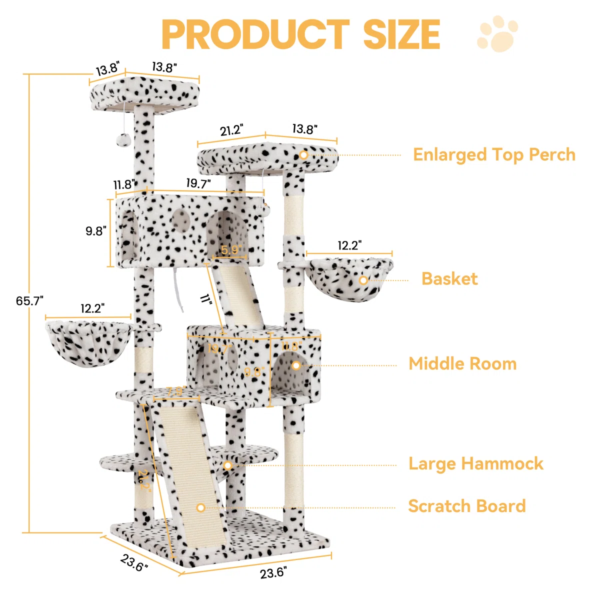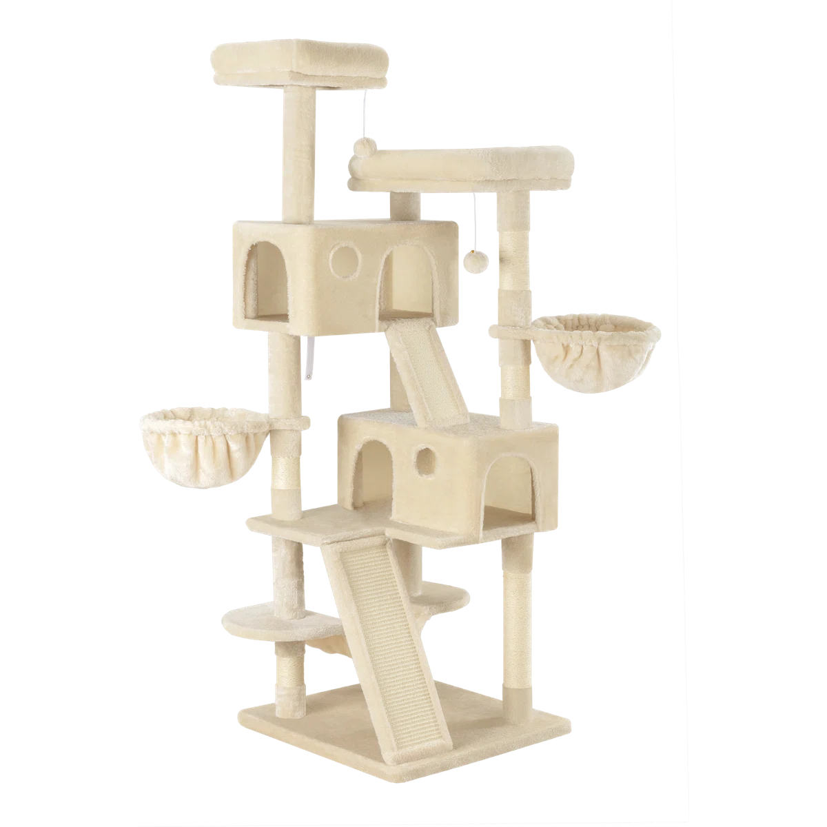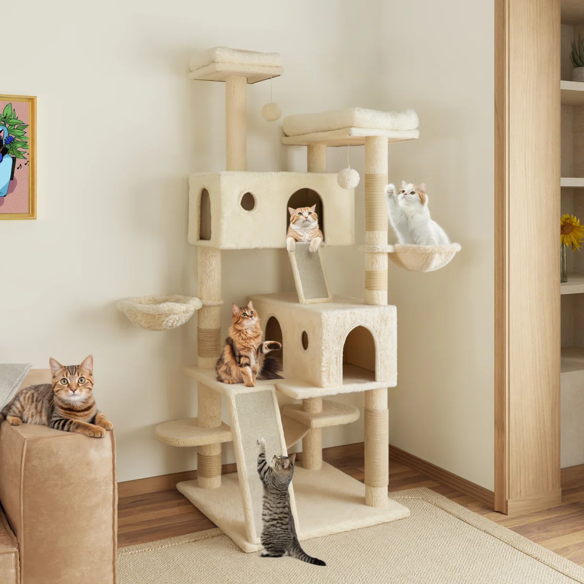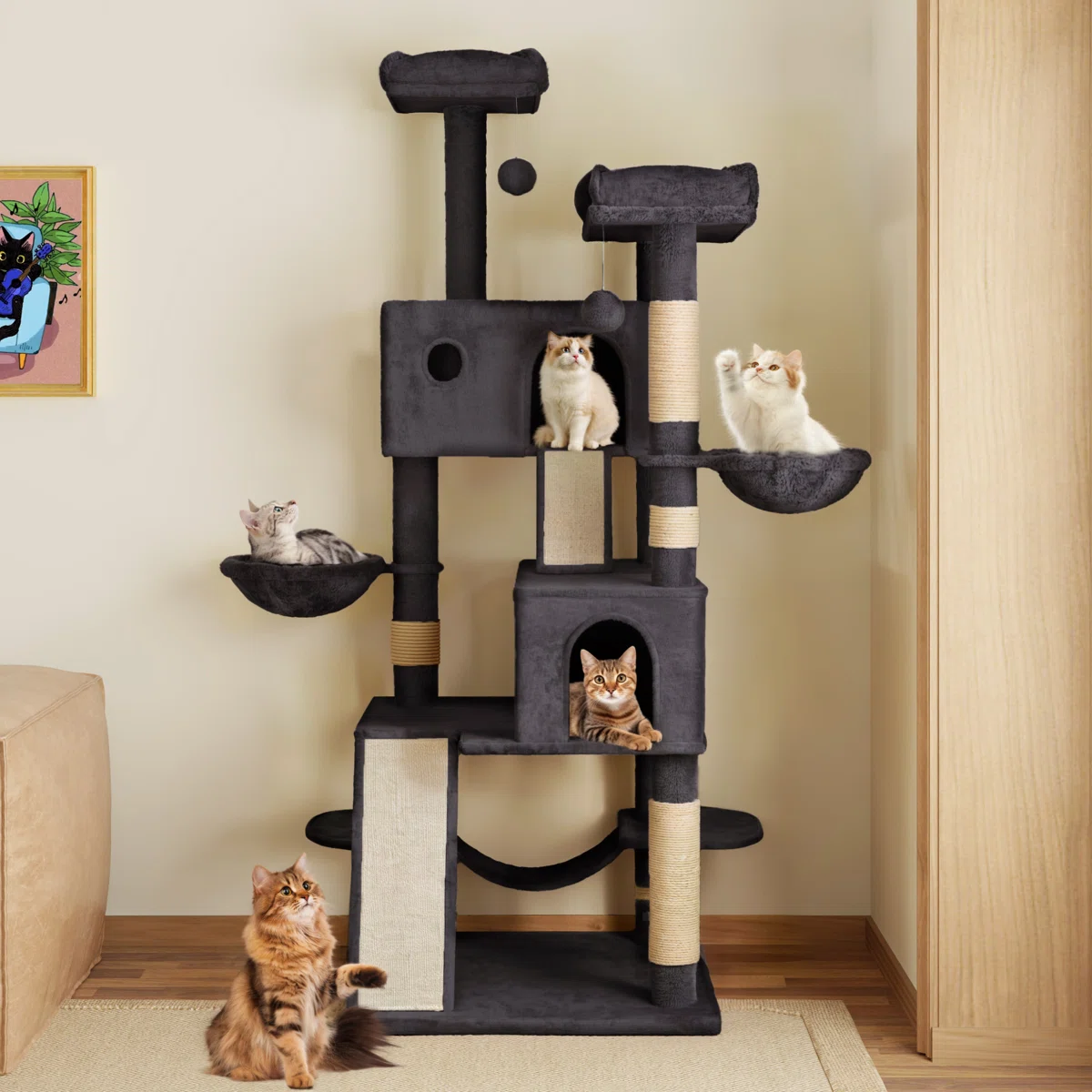 65.7” H Carpet Cat Tree Condos and Scratching Posts Included, with Platforms and Hammock